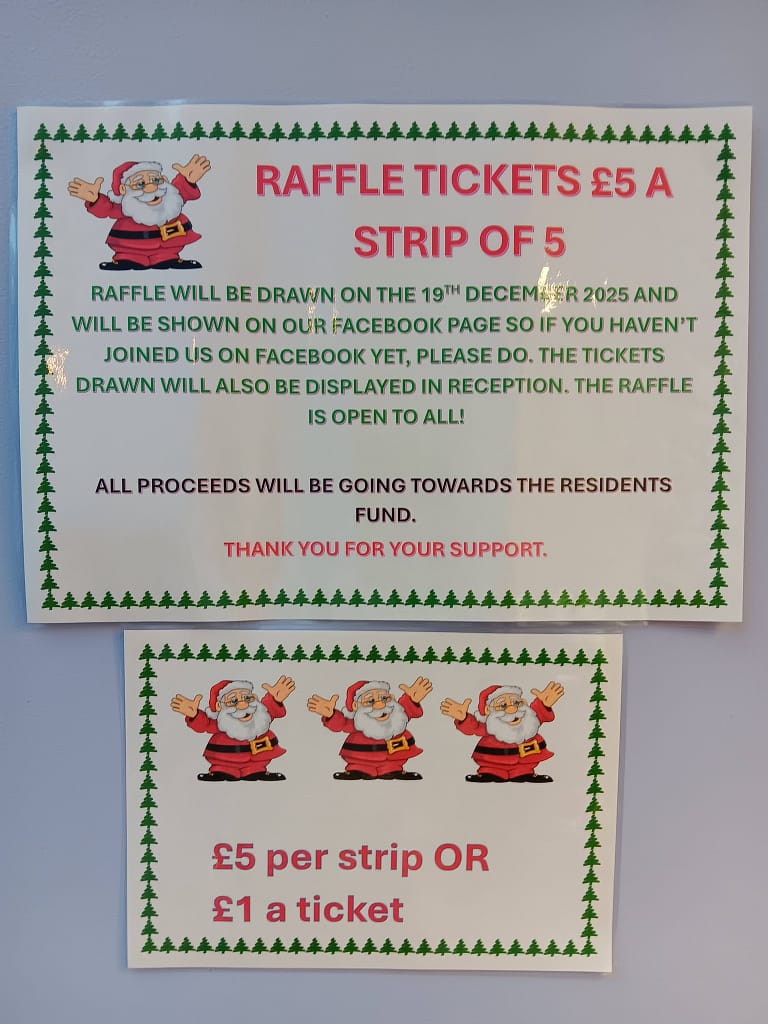 Christmas 🎄 is coming and we are ready with our Christmas raffle. All welcome to buy tickets 🎟 come and be a lucky winner. #blacknotley #longmeadcourt #braintreeessex all proceeds for our wonderful residents.